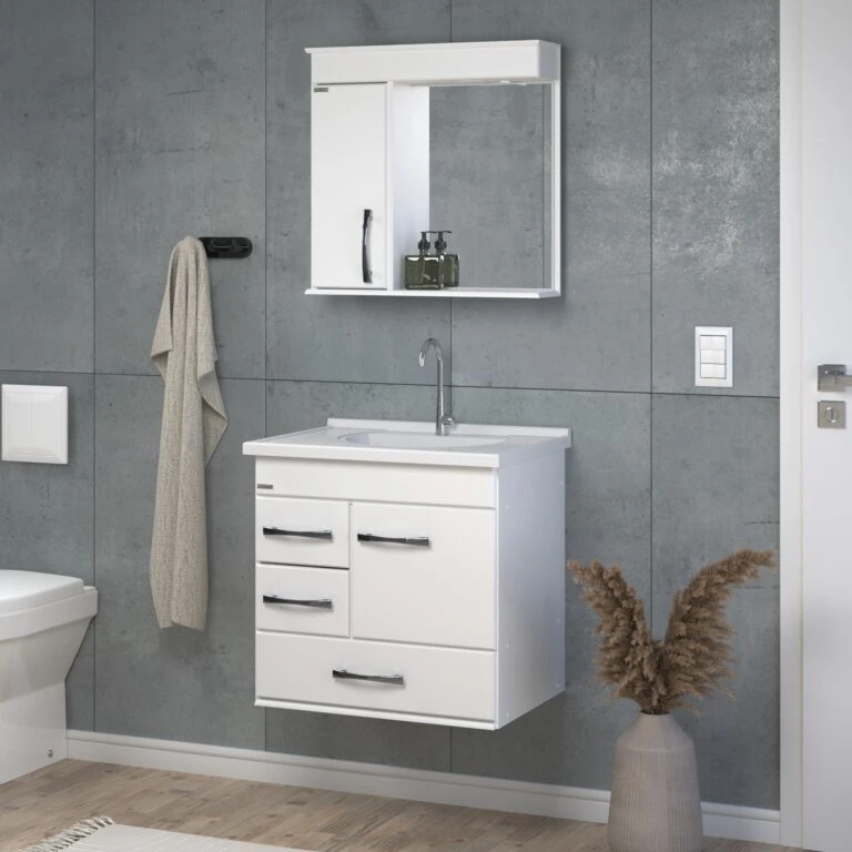 Kit Gabinete para Banheiro Mônaco Suspenso 59,5cm