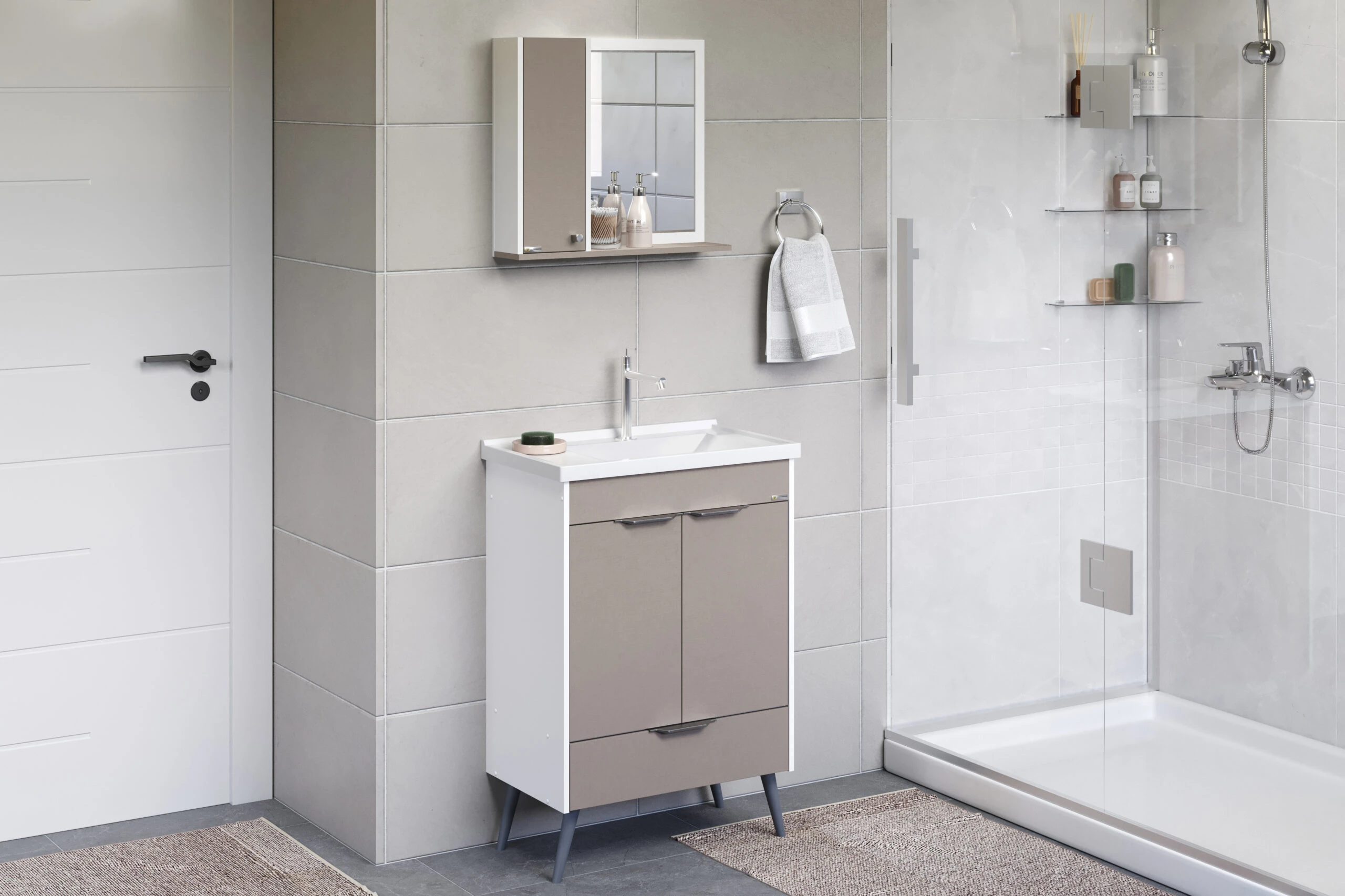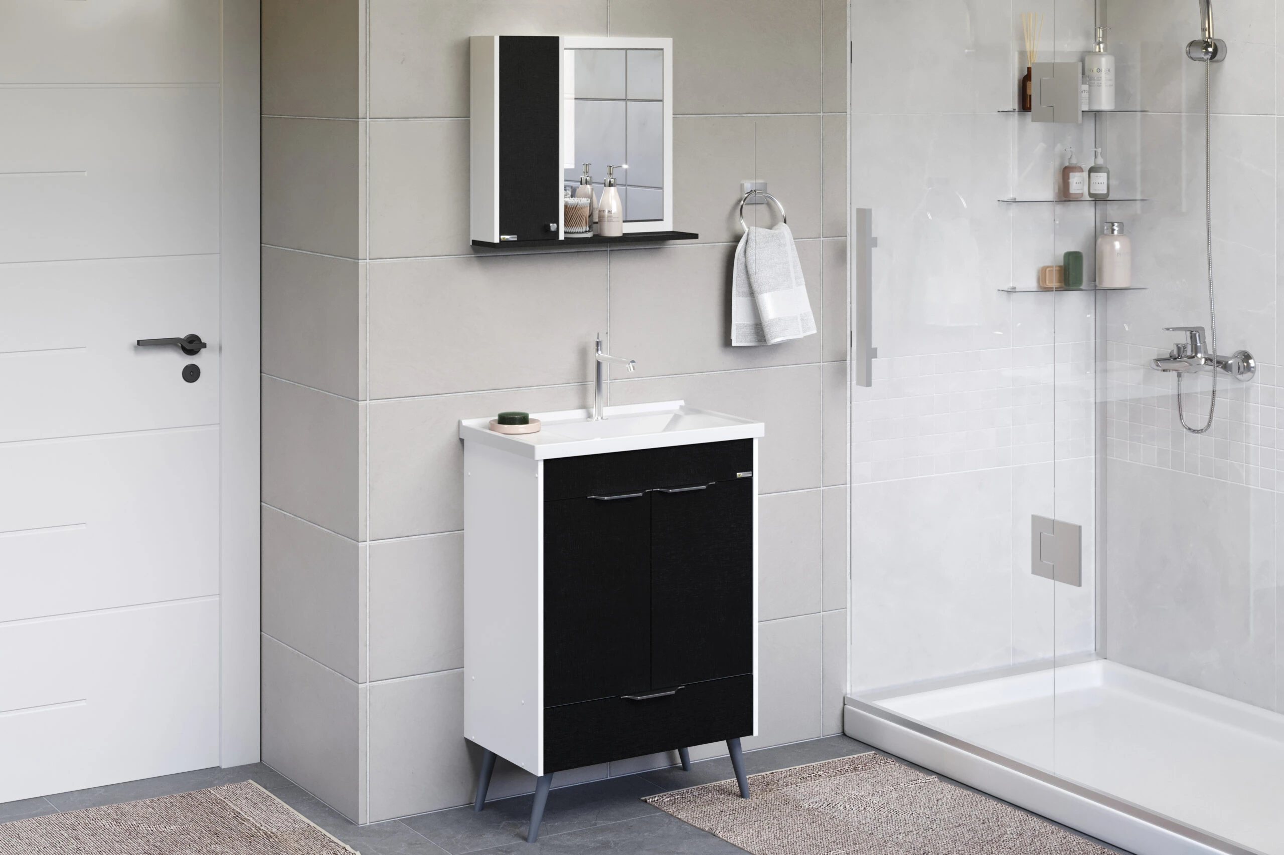 Kit Gabinete para Banheiro Roma Com Pé 55,4cm