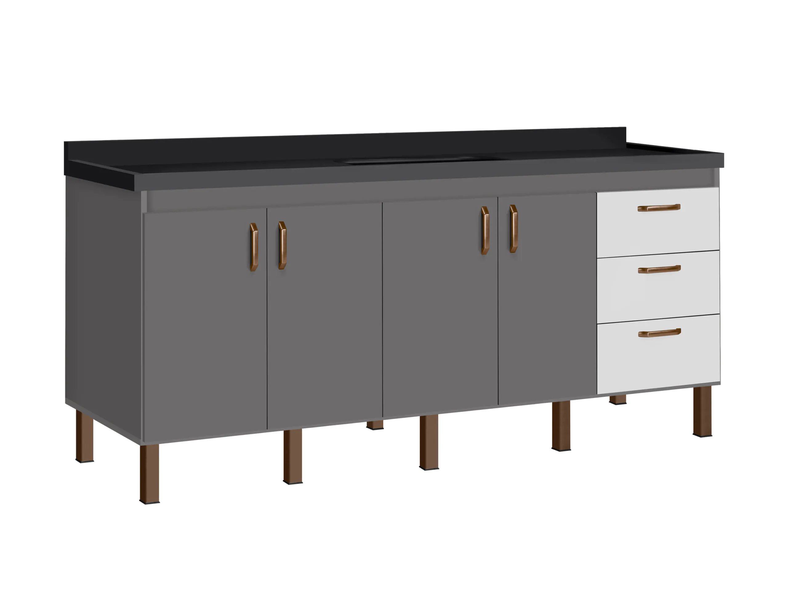 Gabinete de cozinha com 1,8m de largura em MDP/MDF. Linha versátil com ampla variedade de cores para combinar com sua cozinha. Disponível em 9 opções de cor.