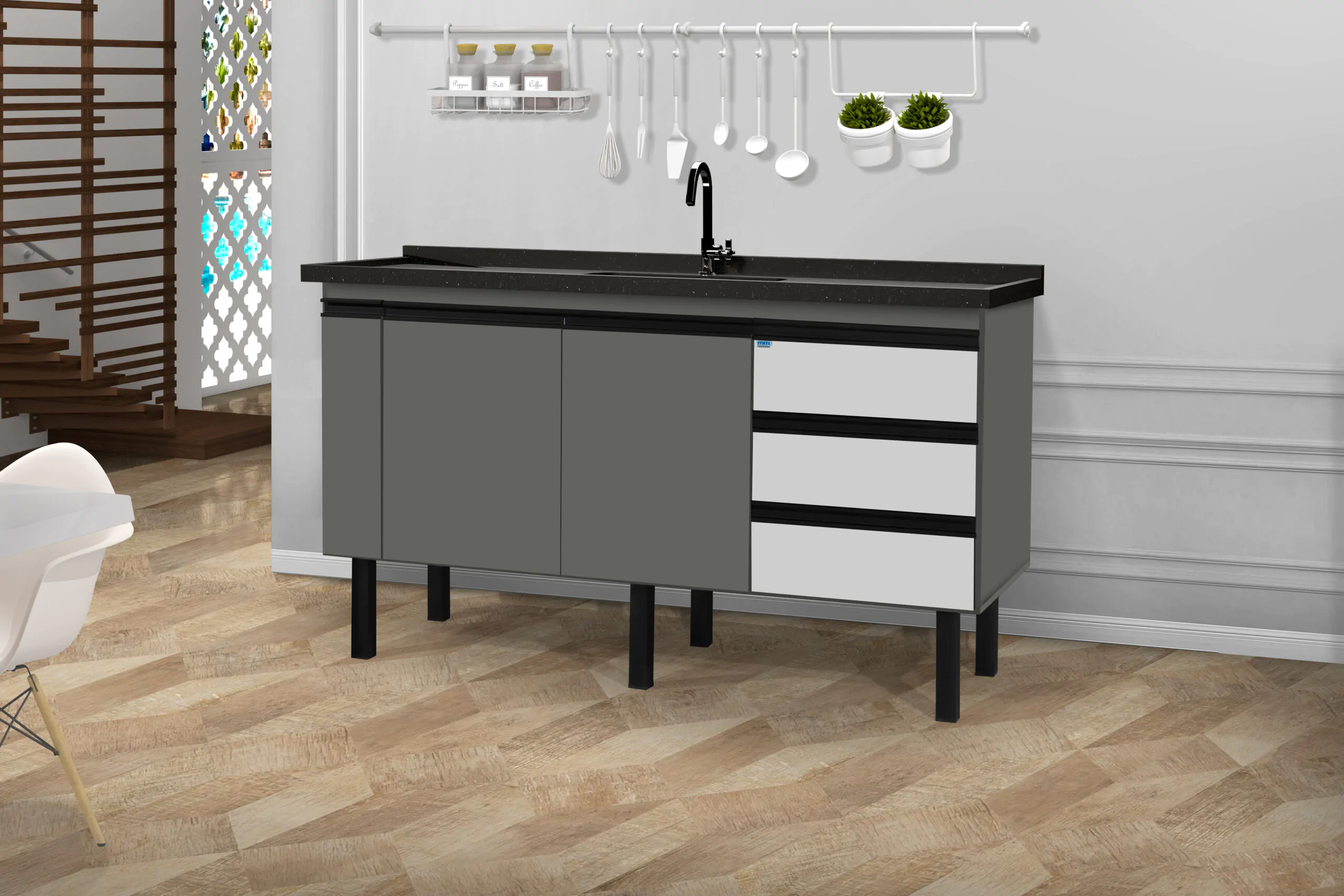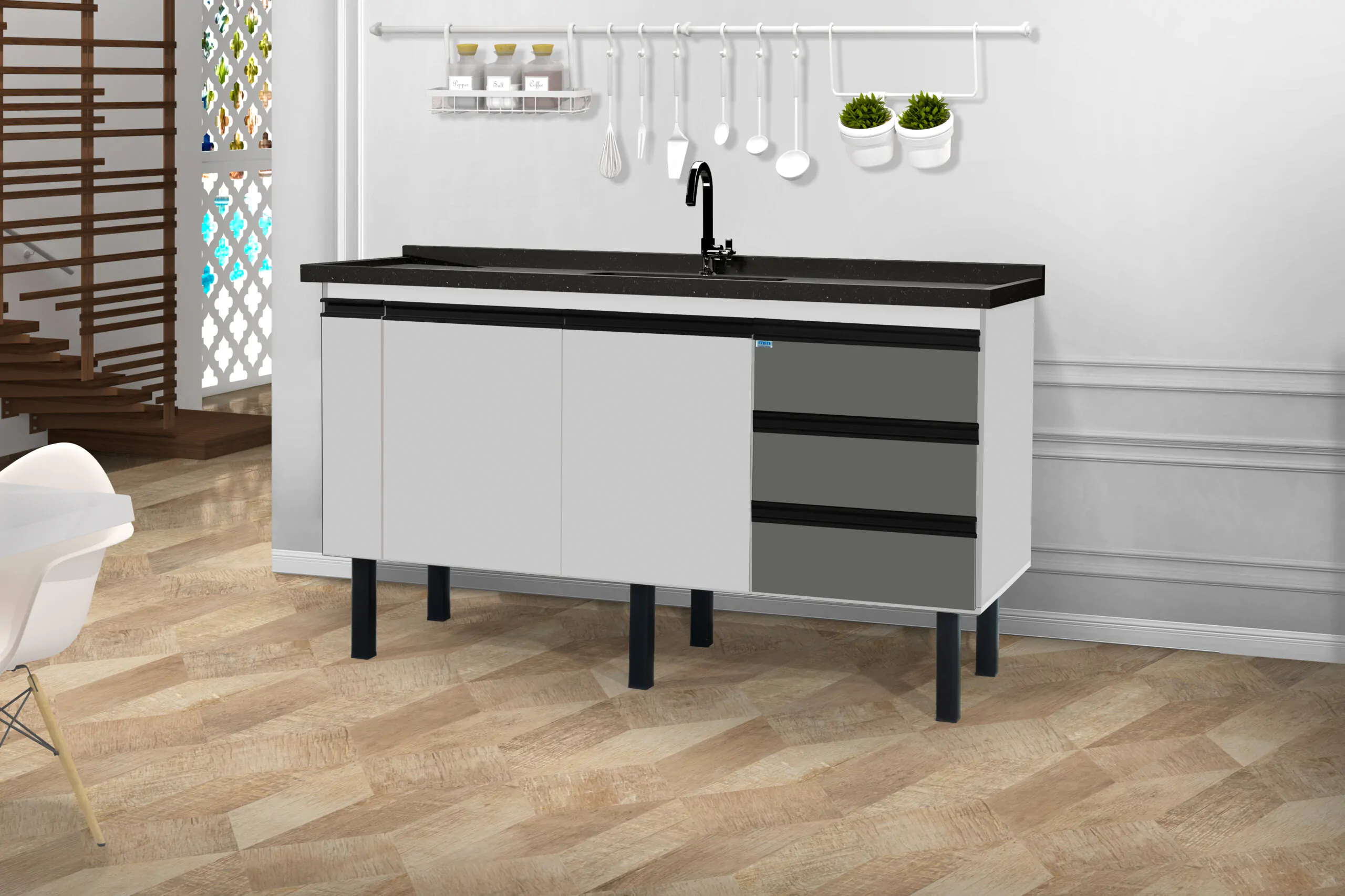 Cozinha completa com 1,5m de largura em MDP/MDF, acompanha módulo aéreo. Conjunto com aéreo integrado para aproveitar o espaço vertical. Disponível em 5 opções de cor.