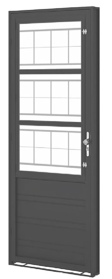 Porta com postigo em aço, linha Aço Mix Primer. Permite ventilação e visibilidade mesmo com a porta fechada. Disponível nos tamanhos: 80x215cm.