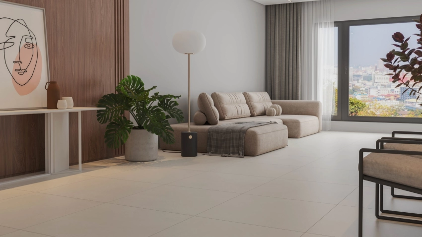 Visual de cimento claro e clean. Moderno e versátil para toda a casa.