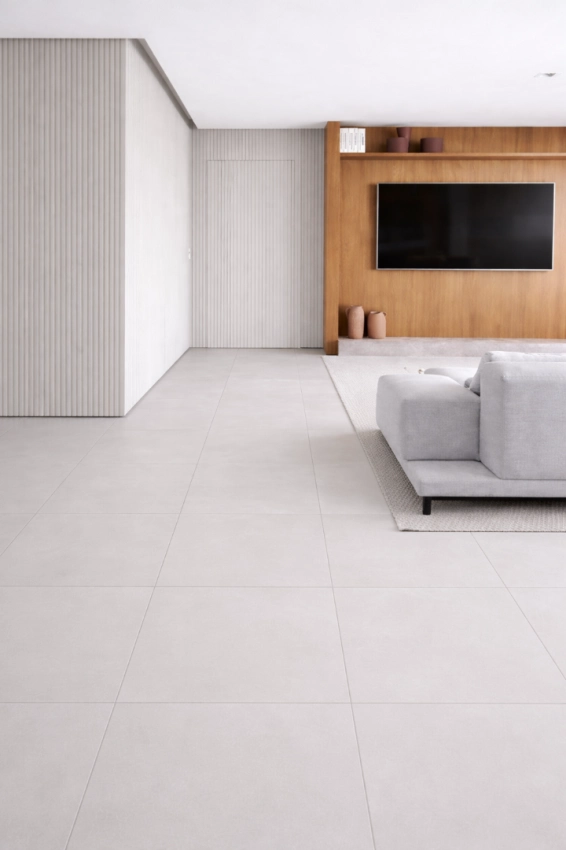 Branco gelo em acabamento acetinado. Clean e sofisticado.