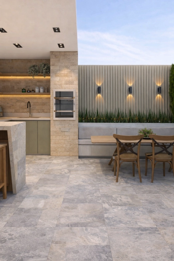 Pedra cinza com textura natural. Para áreas externas com estilo.