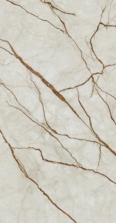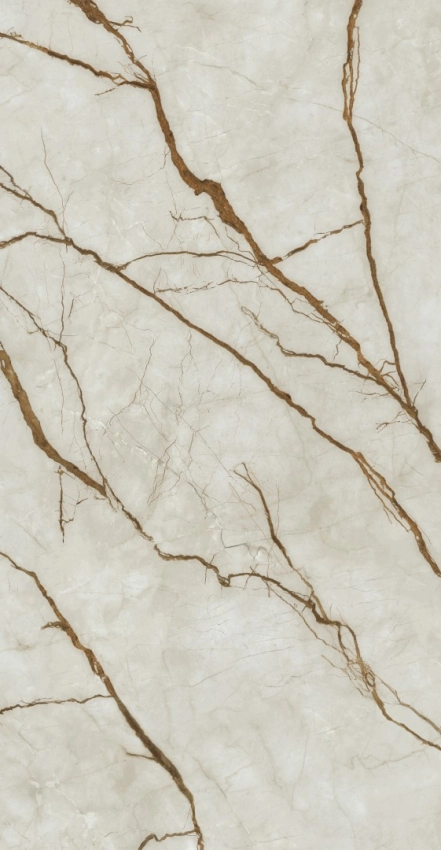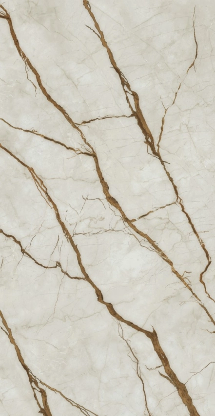 Mármore claro com veios dourados fluidos. Elegância natural.