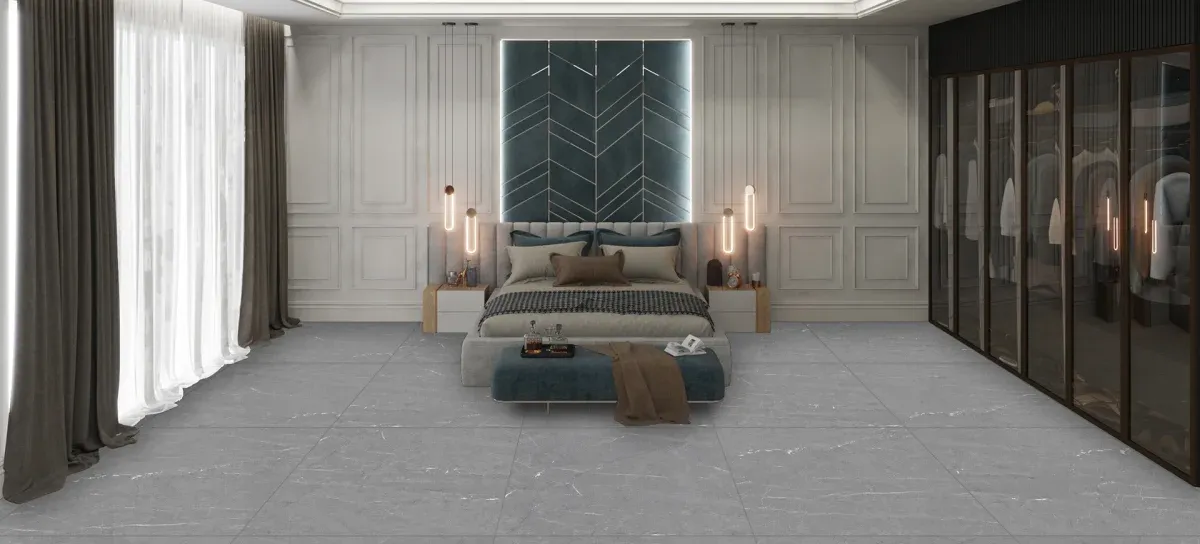 Porcelanato Armani Grigio Acetinado 120x120. Inspiração em mármore com veios elegantes.