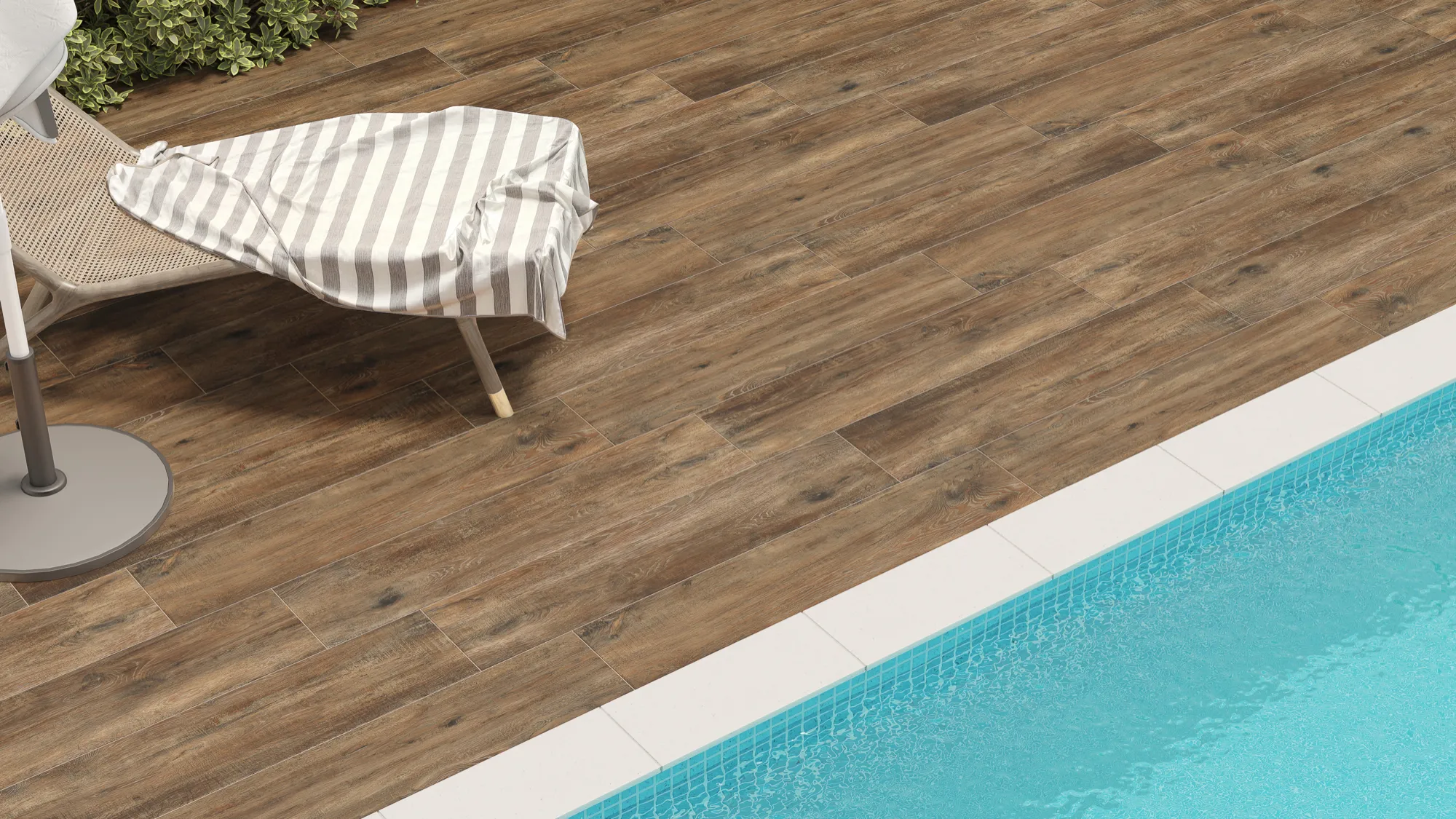 Porcelanato régua visual de madeira Via Rosa. Acabamento fosco, formato 24x108. Elegância natural para qualquer ambiente.