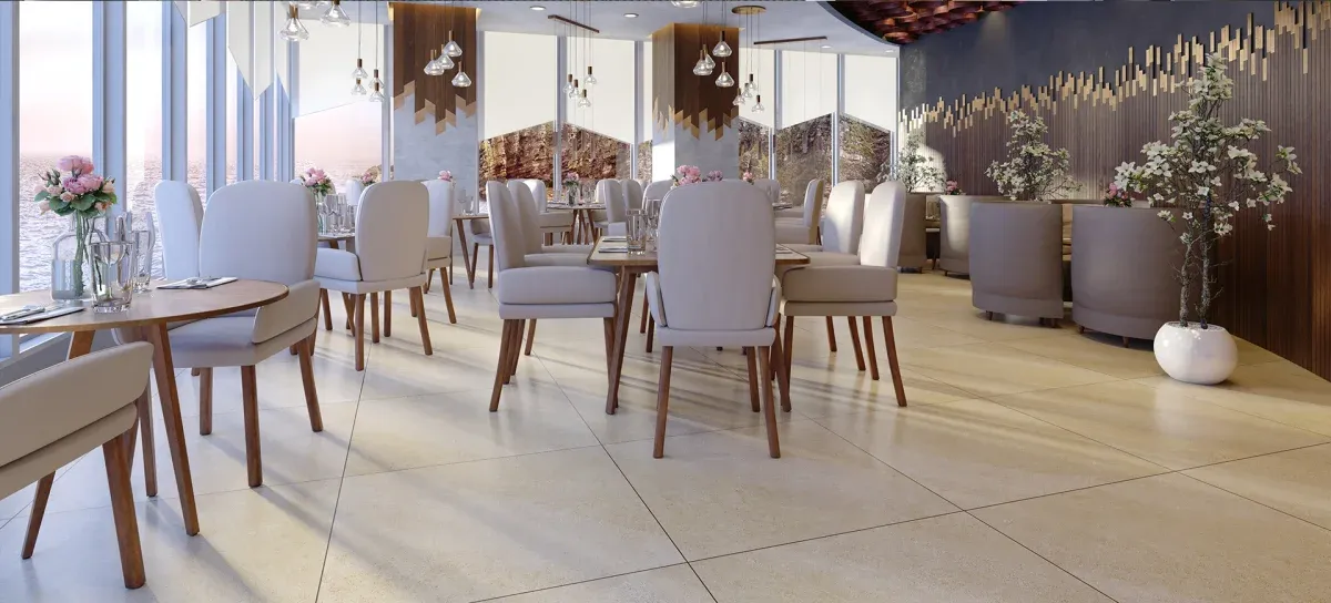 Porcelanato Limestone Avena Tattile 90x90. Reproduz a beleza natural da pedra.