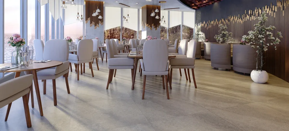 Porcelanato Limestone Castano Tattile 90x90. Reproduz a beleza natural da pedra.
