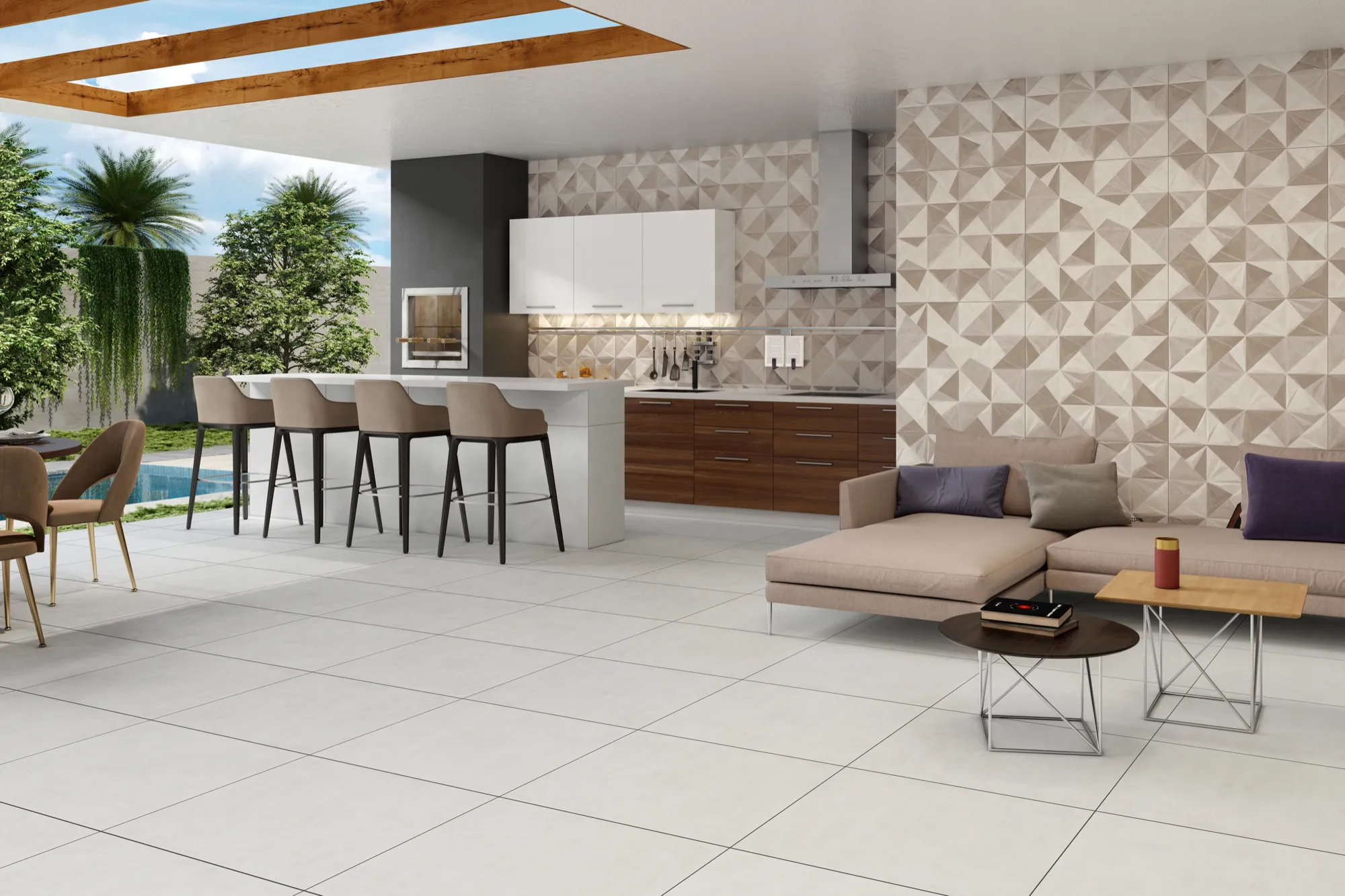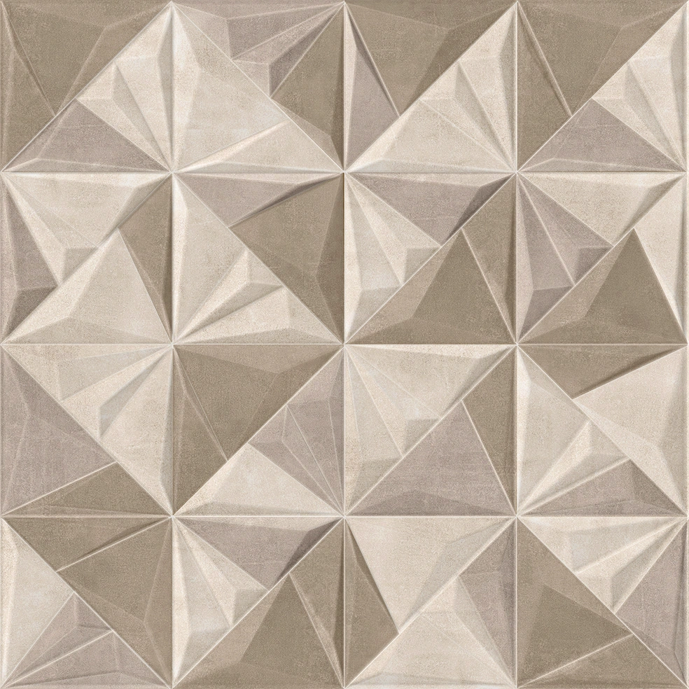 Revestimento 3D cimentício Via Rosa. Acabamento acetinado, formato 72x72. Ideal para paredes de destaque.