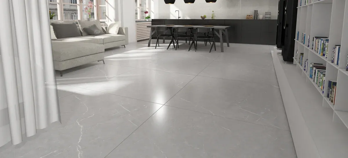 Porcelanato Venato Argenta Acetinado 120x120. Inspiração em mármore com veios elegantes.