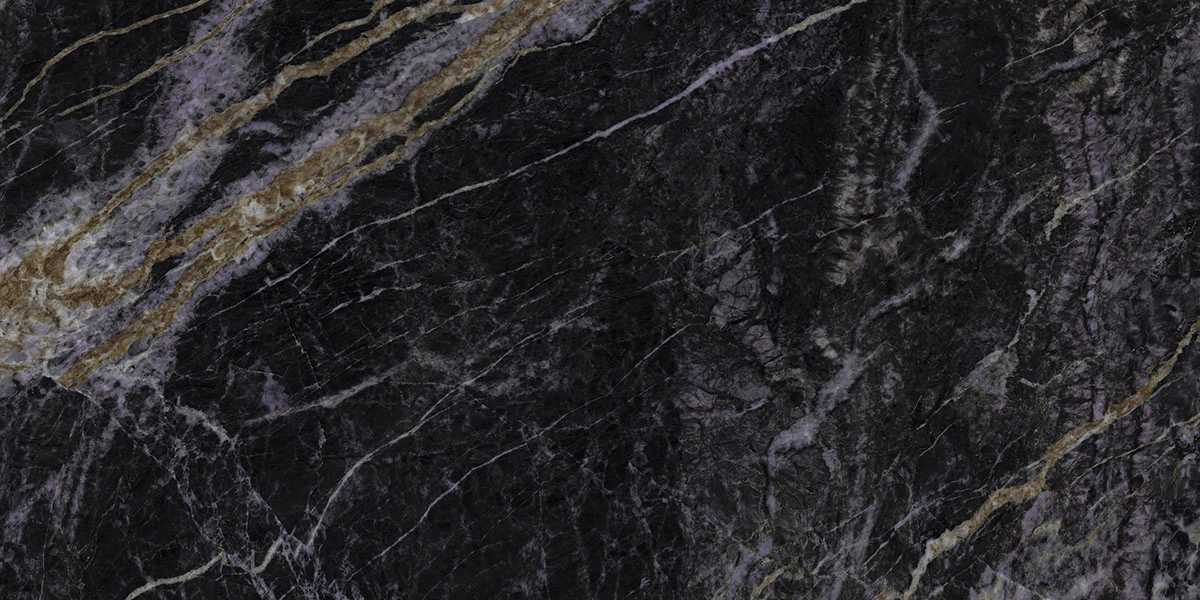 Porcelanato Quarzo Dark Polido 90x180. Reproduz a beleza natural da pedra.