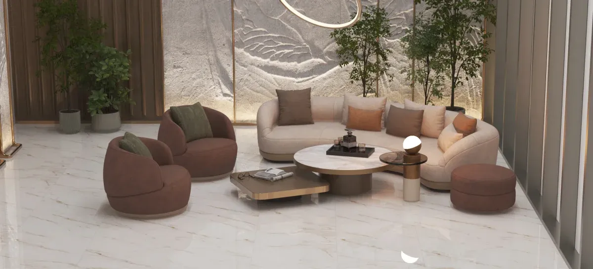 Porcelanato Raggi Oro Polido 90x90. Inspiração em mármore com veios elegantes.