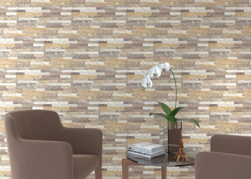 Pedra Siena multicolorida. Beleza rústica para fachadas e muros.
