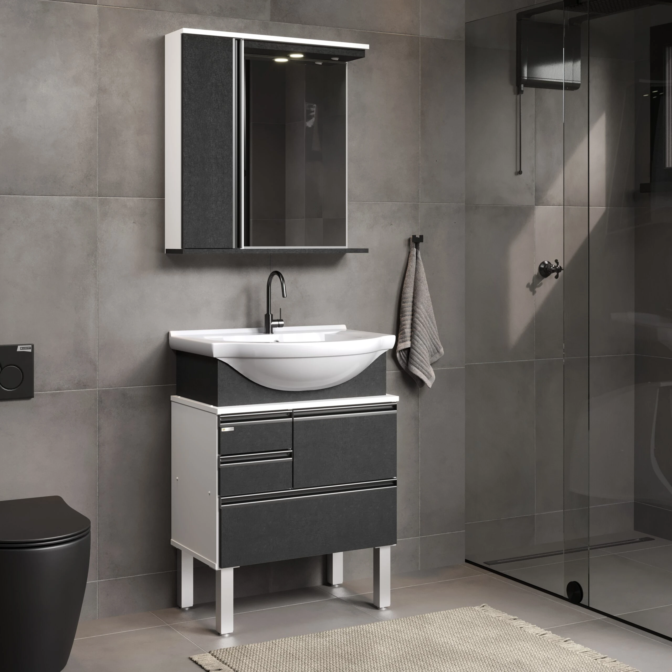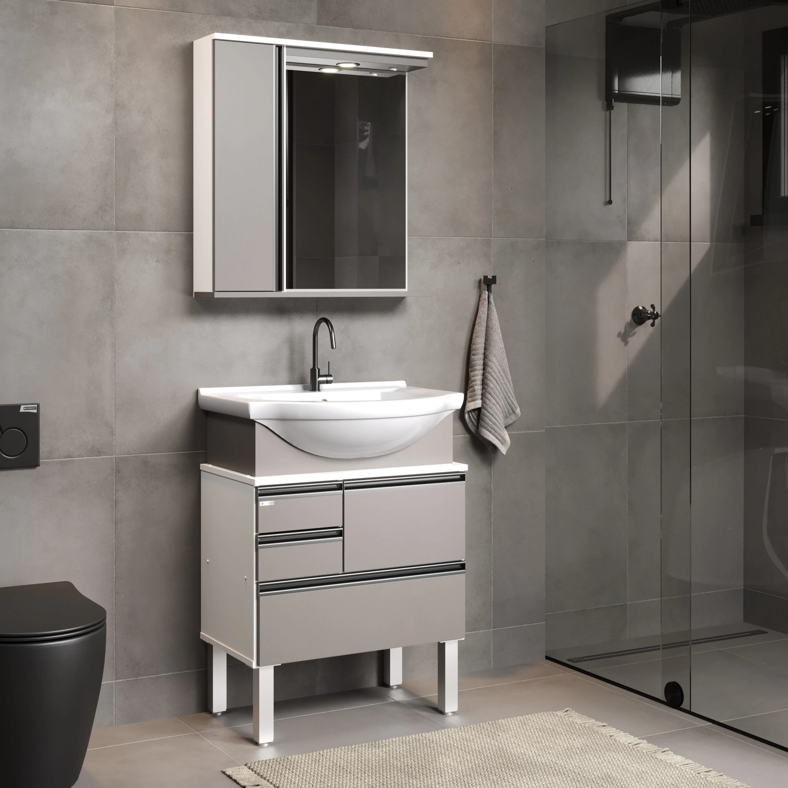 Kit Gabinete para Banheiro Firenze Com Pé 63,5cm