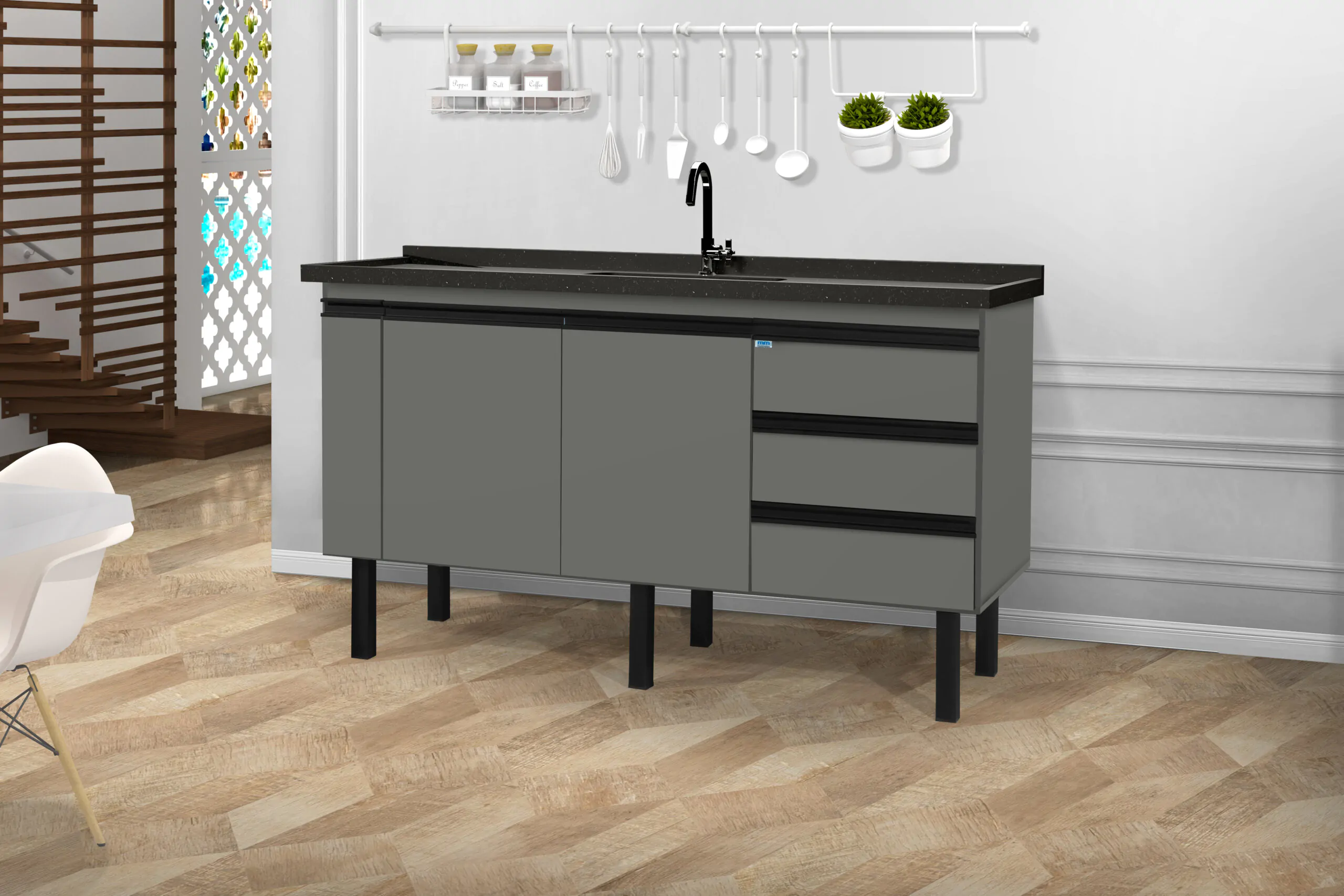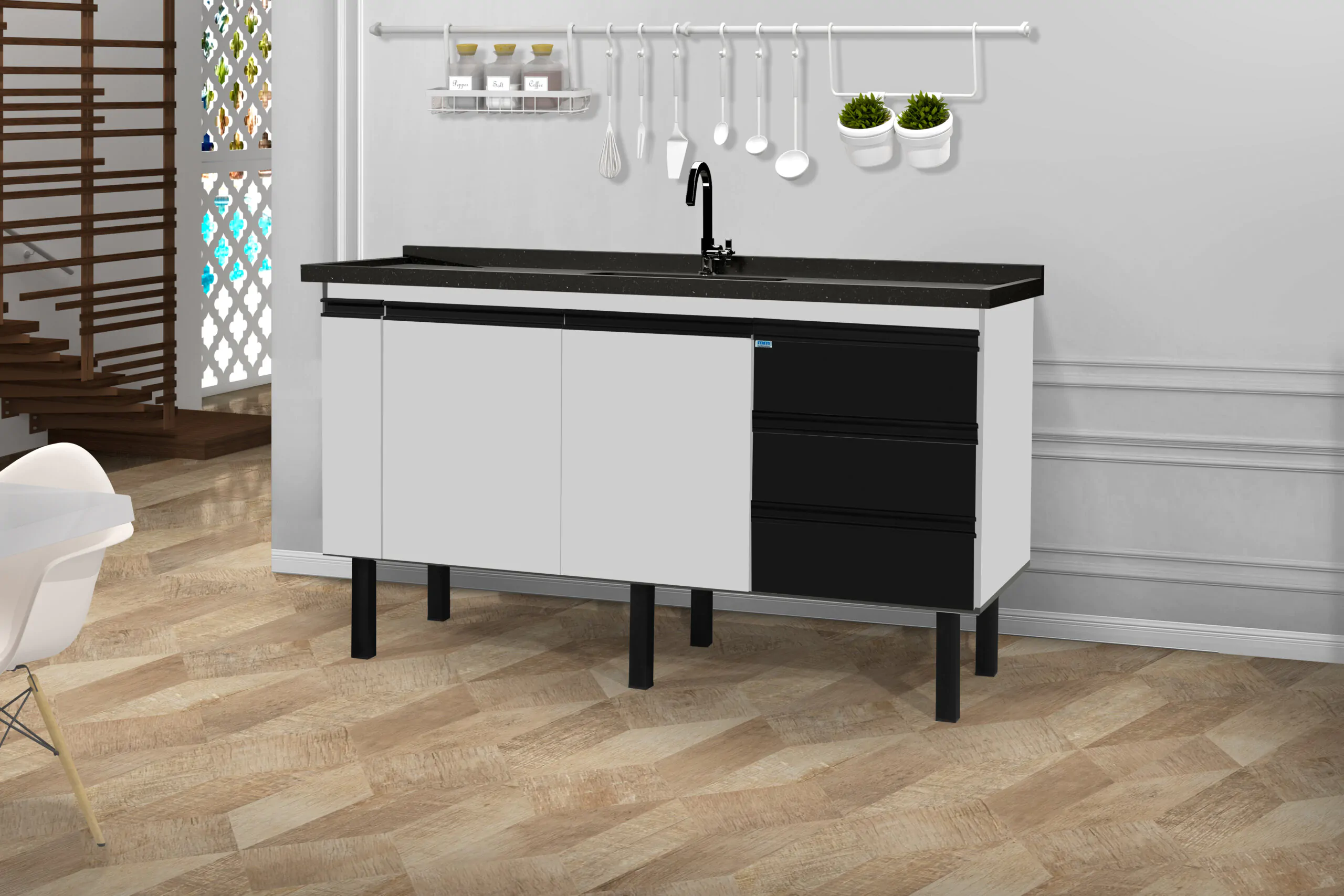 Cozinha completa com 1,5m de largura em MDP/MDF, acompanha módulo aéreo. Conjunto com aéreo integrado para aproveitar o espaço vertical. Disponível em 5 opções de cor.