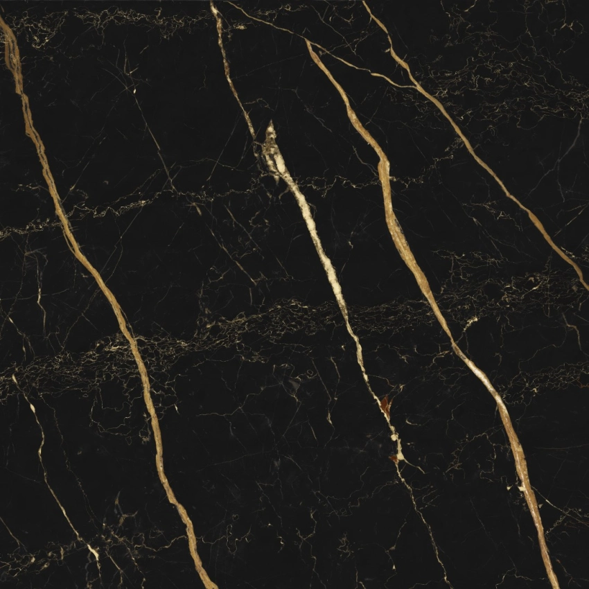 Preto com veios dourados intensos. Luxo e ousadia para ambientes marcantes.