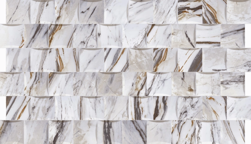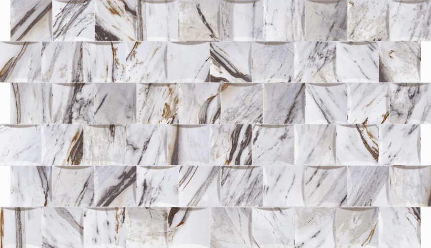 Mosaico Carrara para paredes e fachadas. Visual de pedra natural.