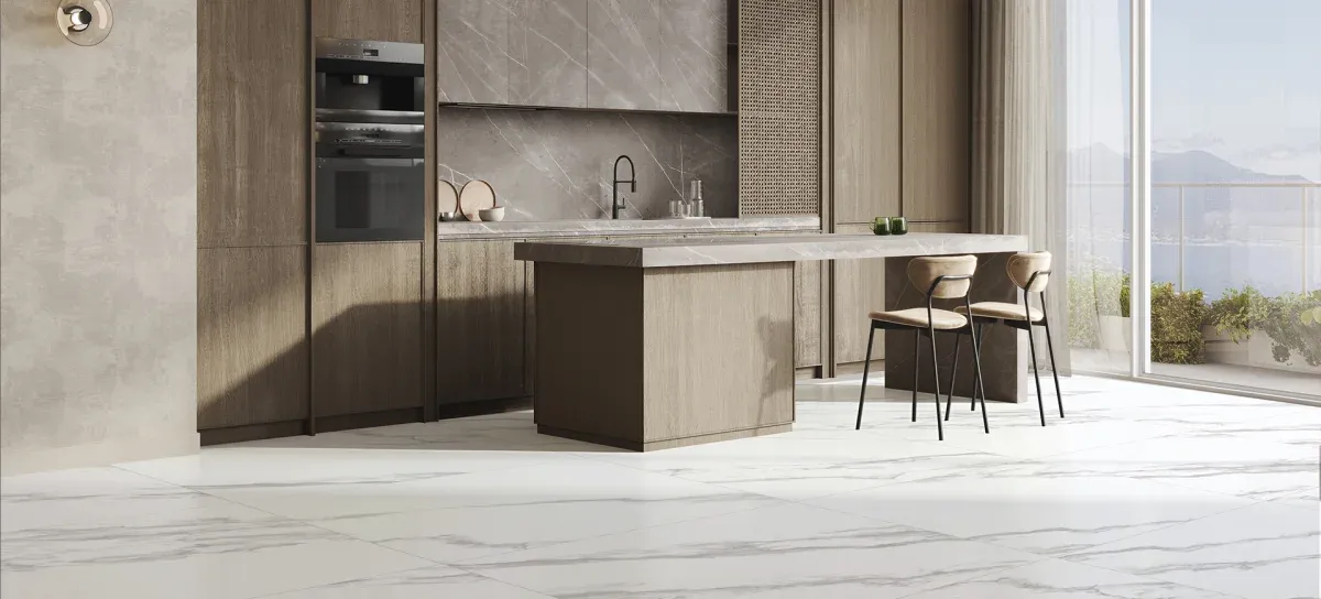 Porcelanato Dharma Argenta Acetinado 90x90. Reproduz a beleza natural da pedra.