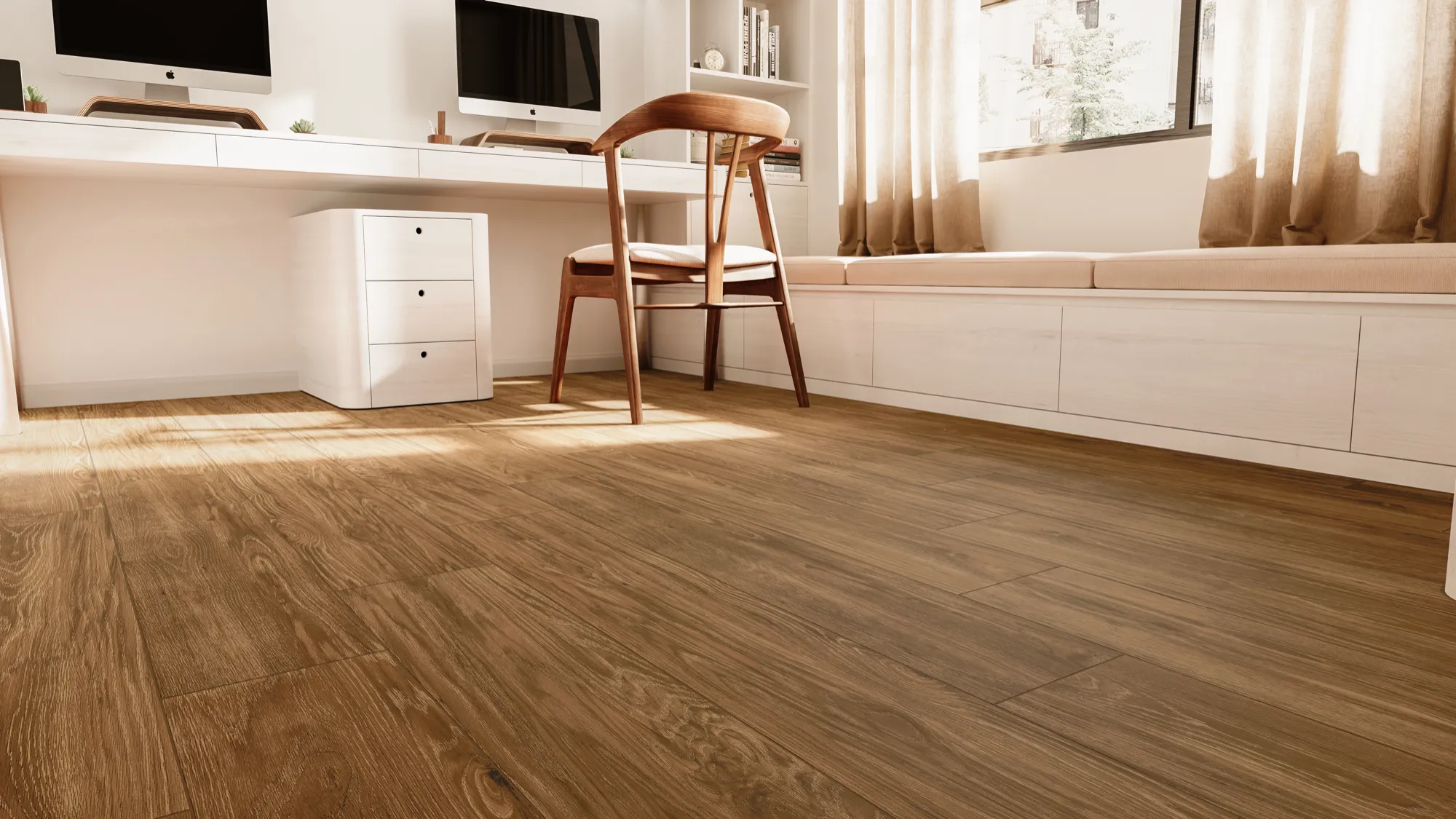 Porcelanato régua visual de madeira Via Rosa. Acabamento acetinado, formato 24x108. Elegância natural para qualquer ambiente.