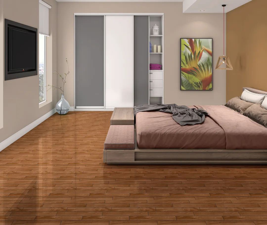 Madeirado castanho com ripas realistas. Aconchego clássico para ambientes internos.