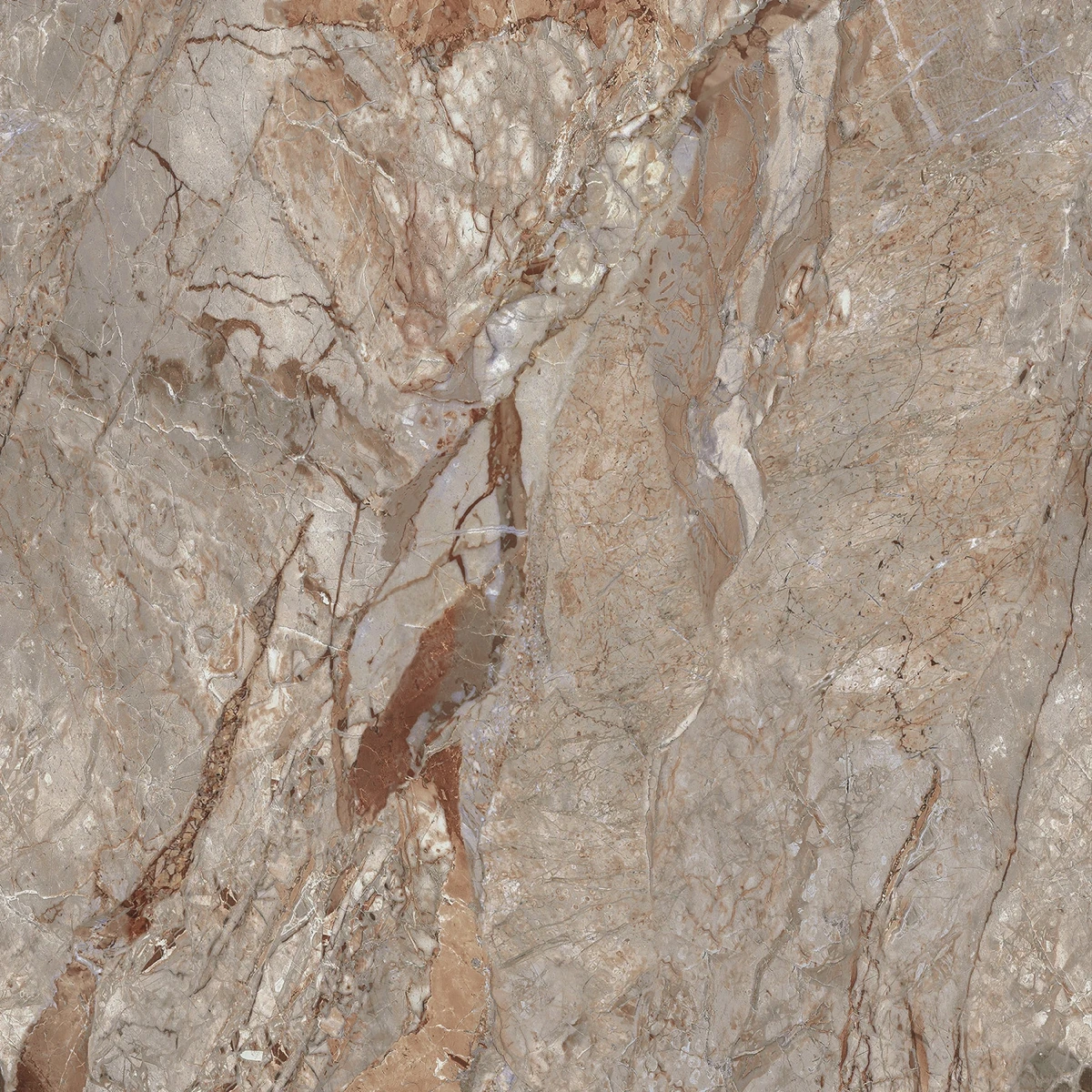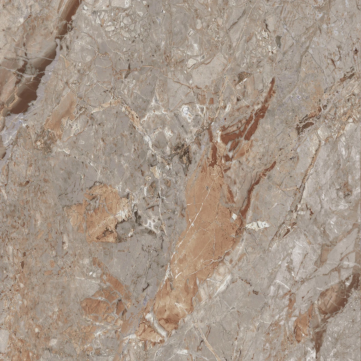 Porcelanato marmorizado Via Rosa. Acabamento polido, formato 71x71. Alta qualidade e sofisticação.
