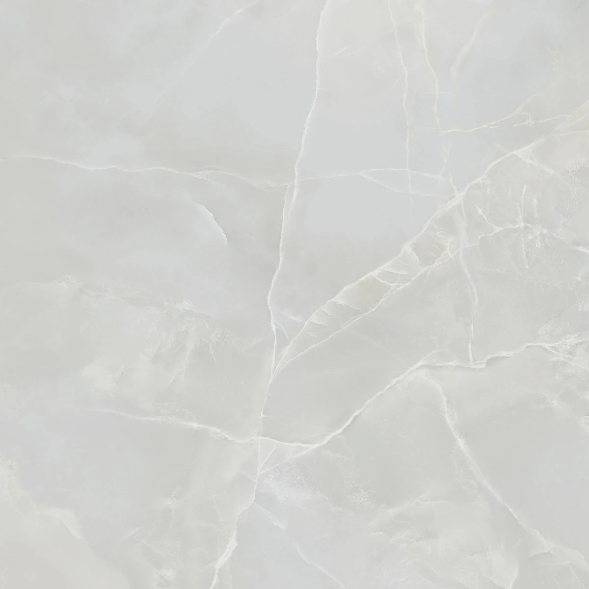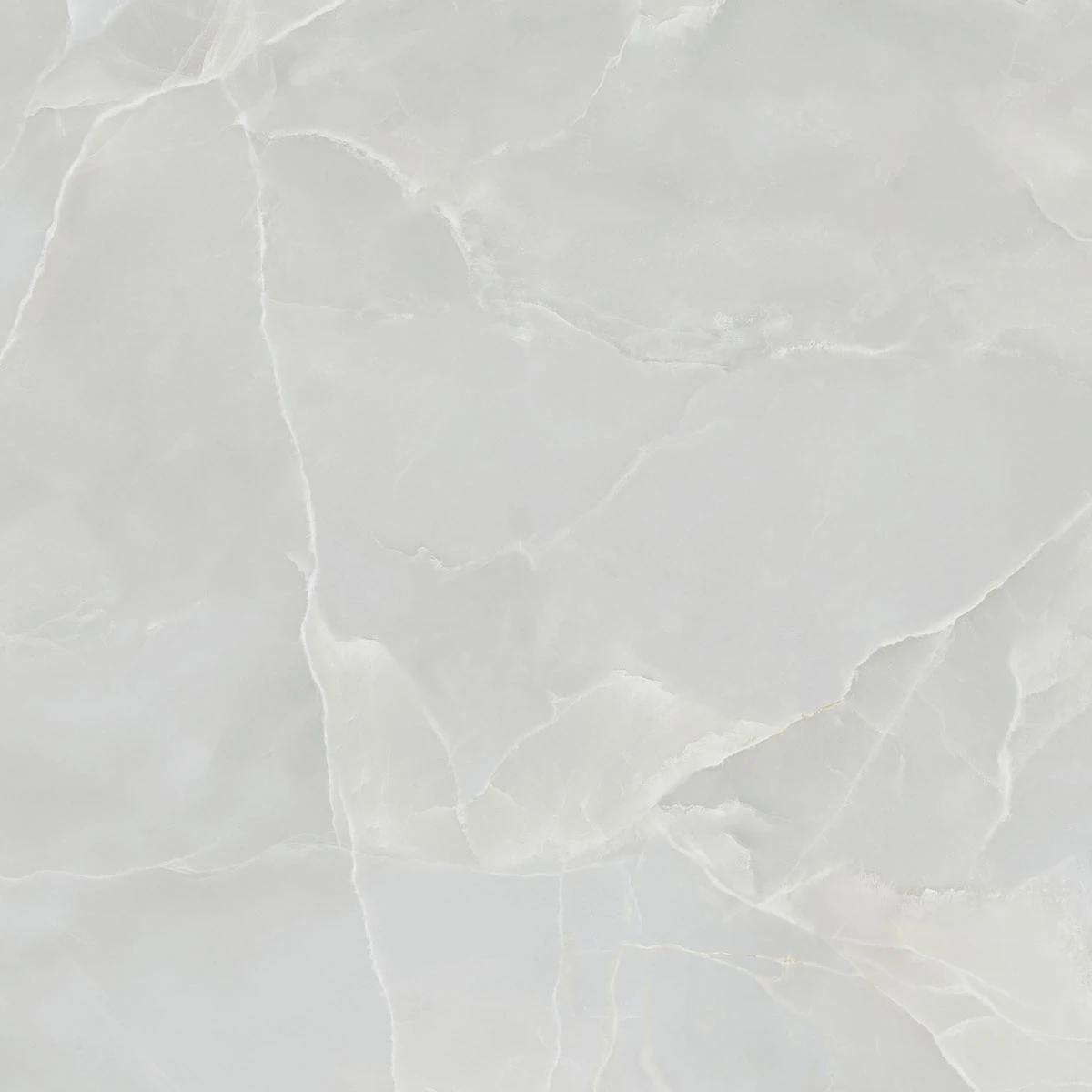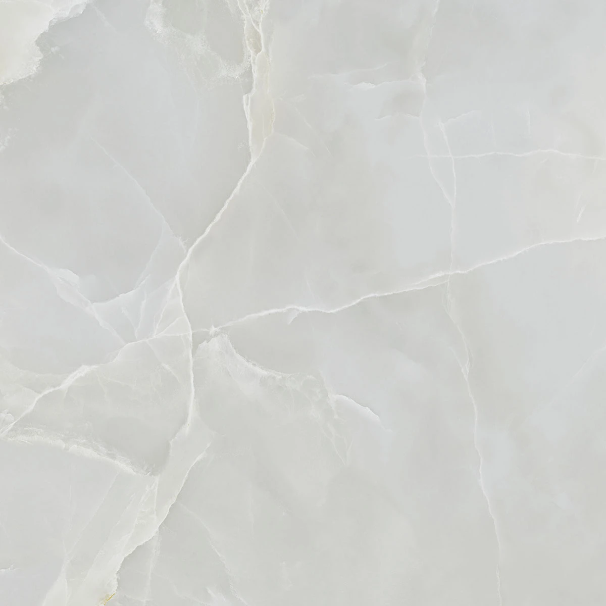 Porcelanato Onyx Blanc Polido 120x120. Inspiração em mármore com veios elegantes.