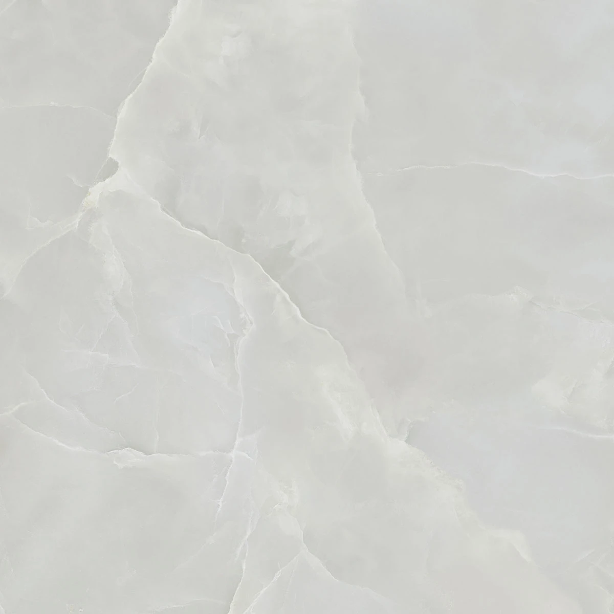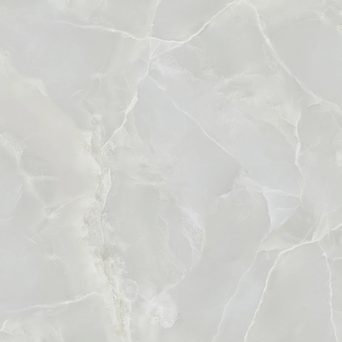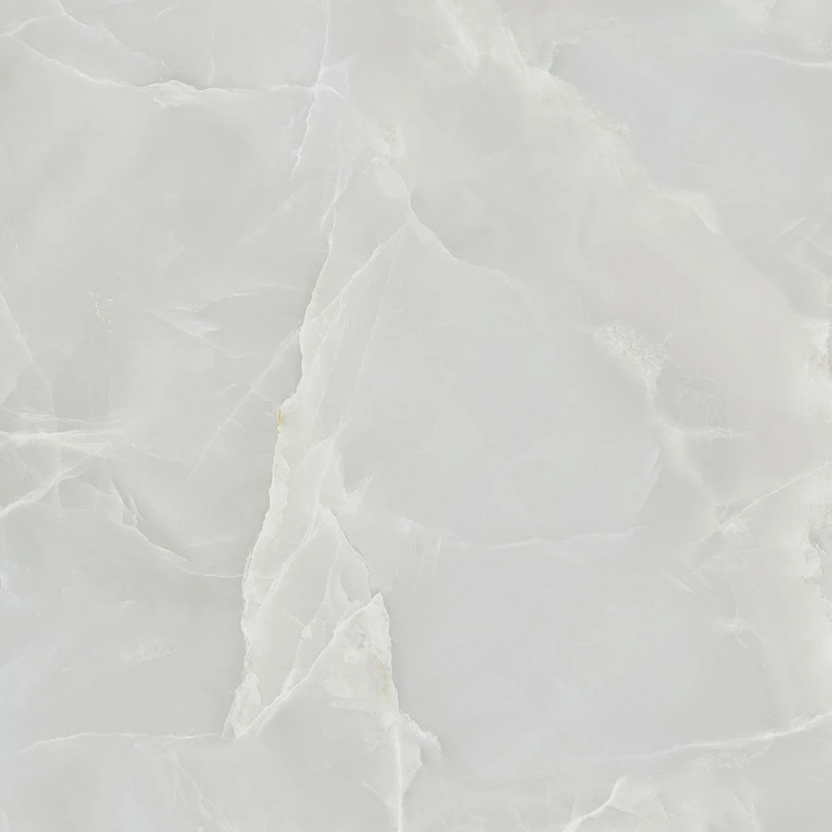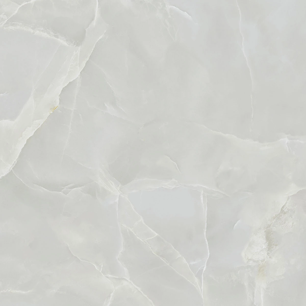 Porcelanato Onyx Blanc Polido 120x120. Inspiração em mármore com veios elegantes.