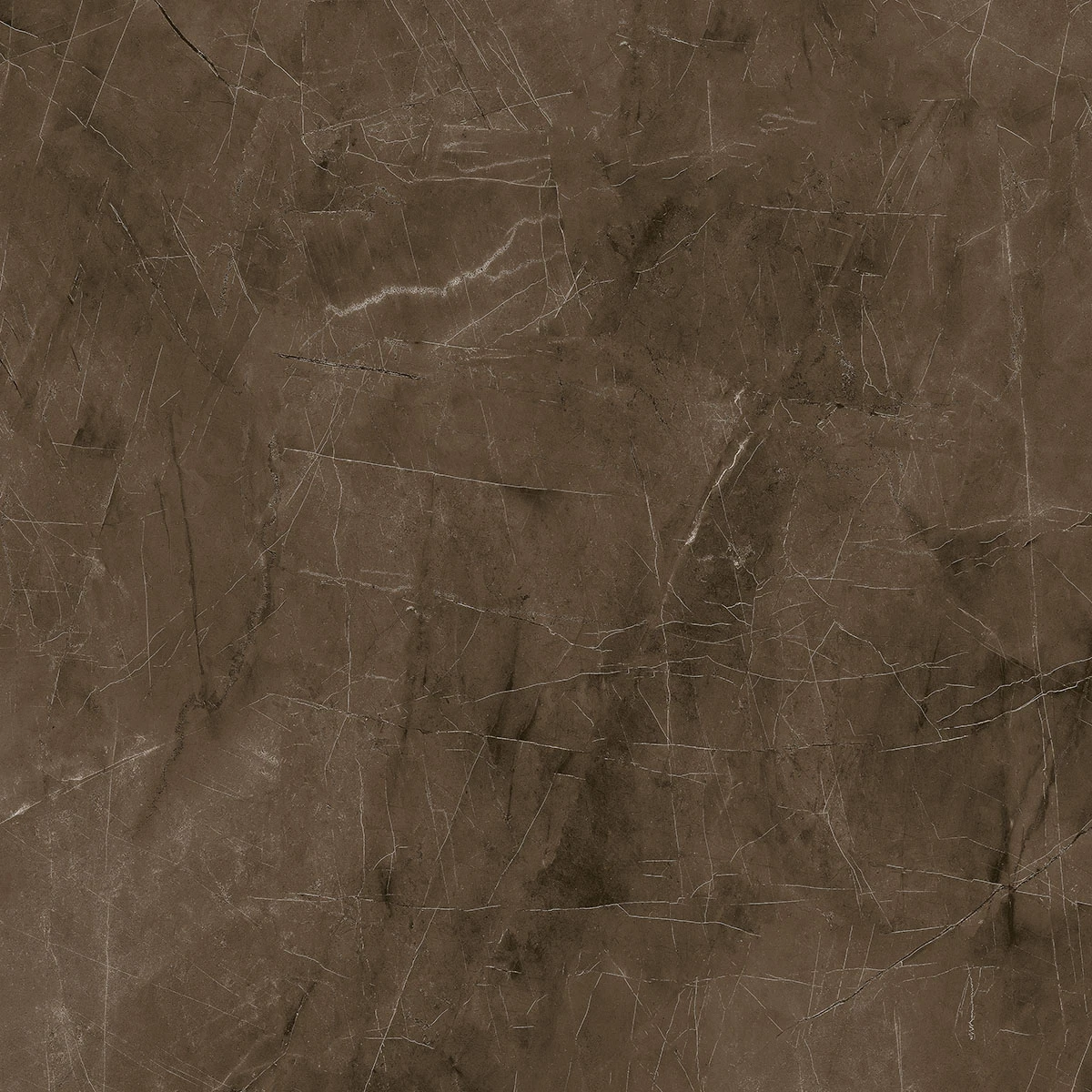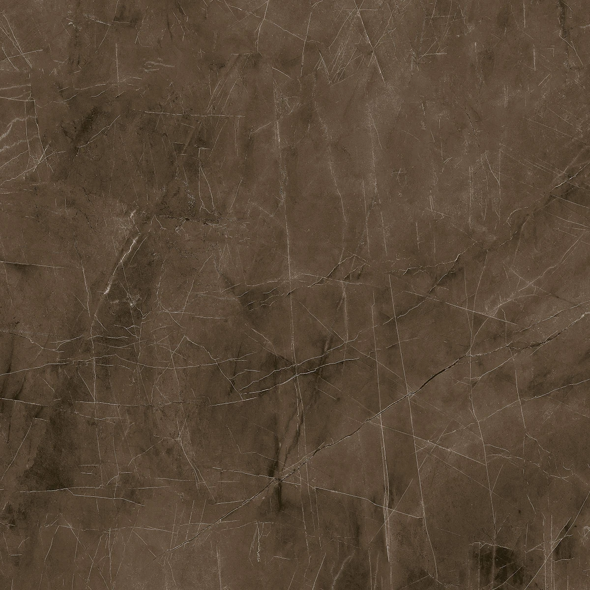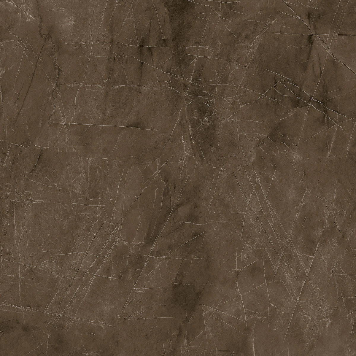 Porcelanato Pulpis Castanho com visual marmorizado. Acabamento polido com brilho sofisticado. Grande formato para ambientes amplos.