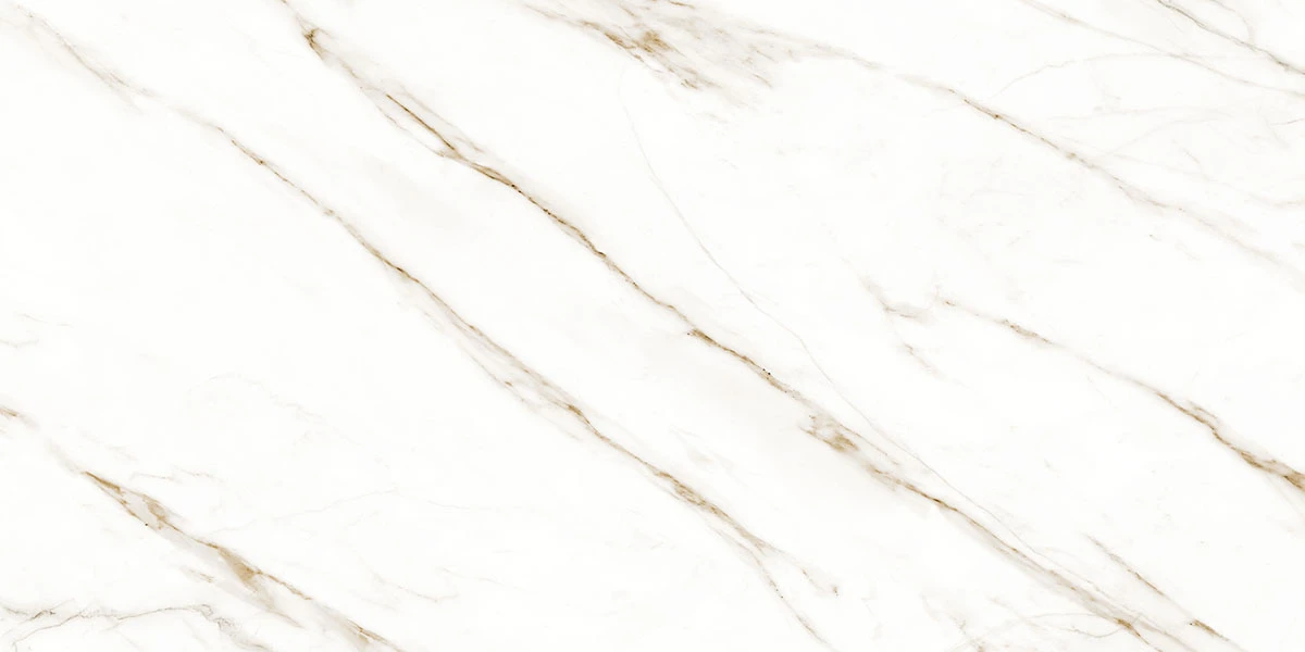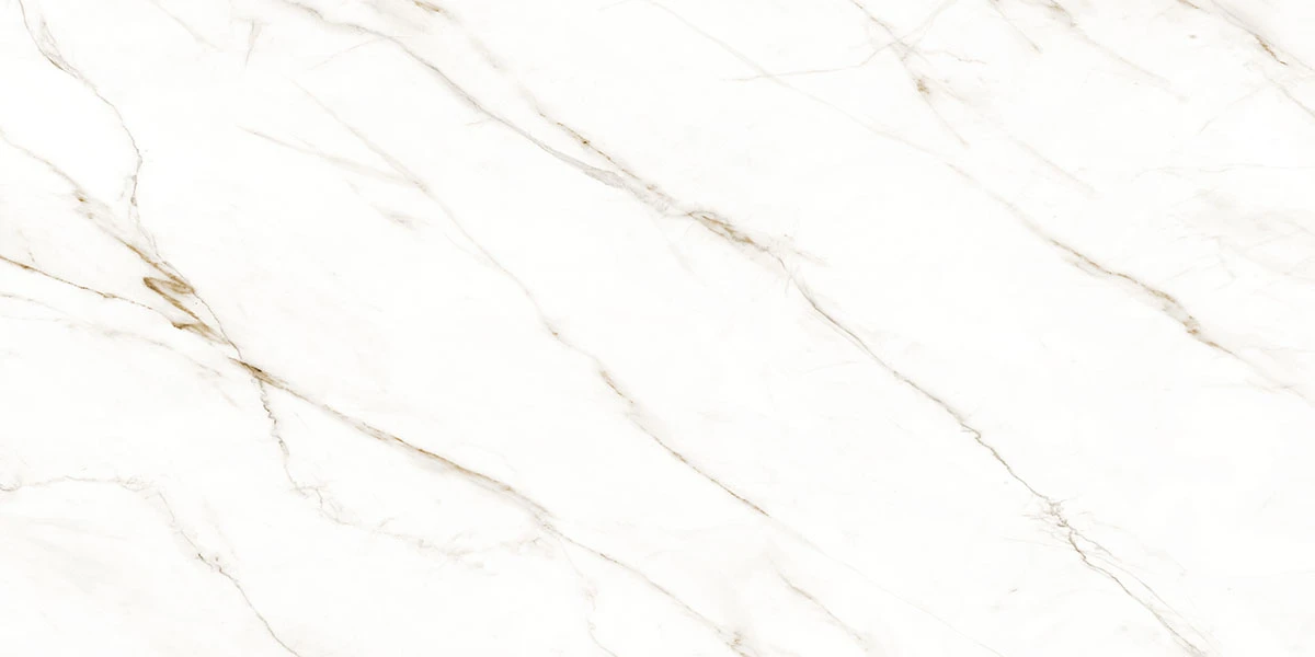 Porcelanato Raggi Oro Acetinado 90x180. Inspiração em mármore com veios elegantes.