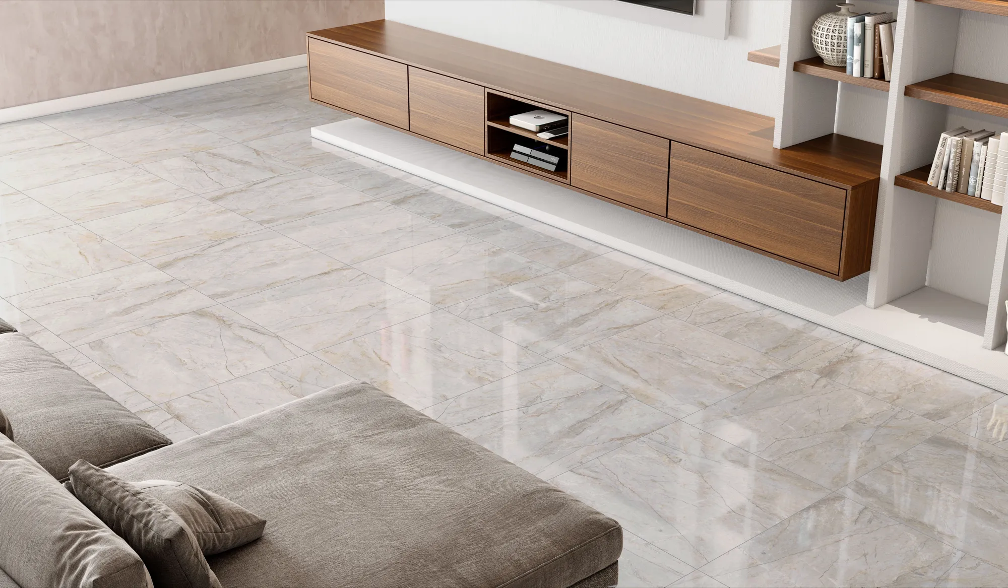 Porcelanato marmorizado Via Rosa. Acabamento polido, formato 71x71. Alta qualidade e sofisticação.