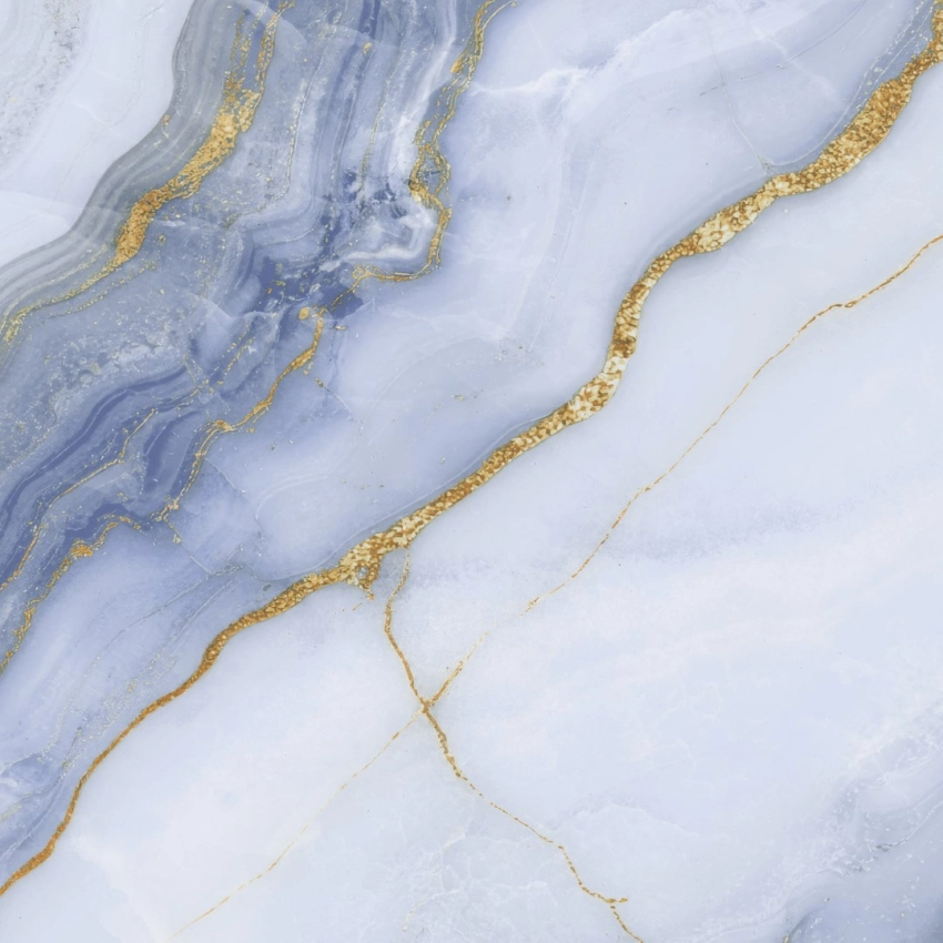 Tons azulados vibrantes com veios. Visual marcante e exclusivo.