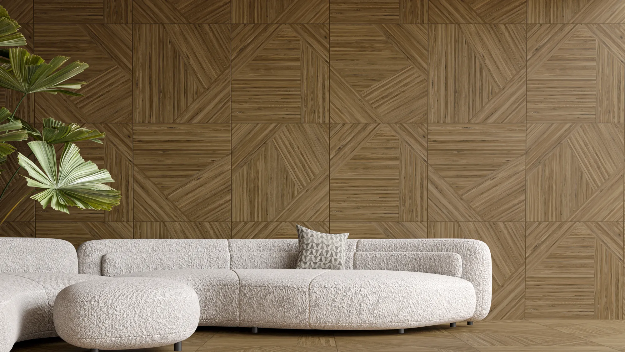 Porcelanato visual de madeira Via Rosa. Acabamento fosco, formato 72x72. Alta qualidade e sofisticação.